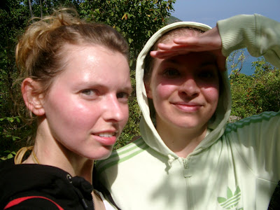 Ich sollte am besten am Strand liegen bleiben und mich nicht bewegen. Das wäre besser für alle anderen und vorallem für mich. Aber nein, nach einem chilligen Tag gestern, dachte ich mir ey, heute muss mal wieder was passieren und habe Sarah überredet mit mir auf den Berg zum View Point zu laufen. Sind dafür extra um halb 8 aufgestanden, damit es nicht so heiß wird. Ok, Punkt 8 sind wir losgewandert und habe natürlich erstmal voll den falschen Weg genommen. Ist uns aber erst aufgefallen, als irgendein Schild mit thailändischer Schrift drauf erschien und ein Totenkopf drauf war. Da dachte wir uns hier stimmt was nicht, sind zurück und haben dann auch den richtigen Weg/Trampelpfad gefunden. Am Anfang gings echt megasteil hoch über Wurzeln und Steine und kaum ist man stehen geblieben, kam ein Schwarm Moskitos und hat sich auf einen gesetzt. Darauf waren wir natürlich überhaupt nicht vorbereitet. Wir dachten, die Viecher kommen nur bei der Dämmerung aber nein, sie sind auch im Urwald tagsüber. Hatten dann die Wahl entweder wieder 20 Minuten zurück zu laufen uns einzusprühen und nochmal her zu kommen oder einfach zügig den Berg hoch zu rennen. Haben die zweite Wahl genommen und sind da hochgerannt… Nach einer weile kam der erste Schock. Da steht plötzlich so ein fletschende Köter vor uns und ich kam mir wirklich kurz wir Herr Lehmann vor. Nur nicht in Berlin sondern im Dschungel. Aber zum Glück wurde uns geholfen und der Urwaldmensch hat das Vieh zurückgeholt. Dann durften wir den auch noch 20 Bath zahlen um weiter gehen zu dürfen… Ok, es ging dann noch 30 Minuten steil Berg auf, ich habe geschwitz wie noch nie in meinem Leben und ich war so fertig aber habe mich nicht getraut stehen zu bleiben. Als wir vom Bungalow los gelaufen sind haben wir noch großspurig verkündet, dass wir zum View Point laufen und der Kerl an der Bar (Thai) hat uns nur angeschaut und gefragt: With this cloths? Your german are strange… Und jetzt weiß ich auch was er gemeint hat. Mit FlipFlops und Hot Pant durchs Gestrüp des Dschungels zu rennen ist eine sau blöde Idee. Als wir oben ankamen war ich echt kurz vorm kollabieren. Dann bin ich noch eine Felswand hochgeklettert (Sarah hat schlapp gemacht) und dann wusste ich endlich warum ich mir den Scheiss angetan habe. Es war so ein schönes Ausblick. Da oben auf einen Felsen zu sitzen und das alles zu sehen. Geiler als der Sonnenaufgang!!!