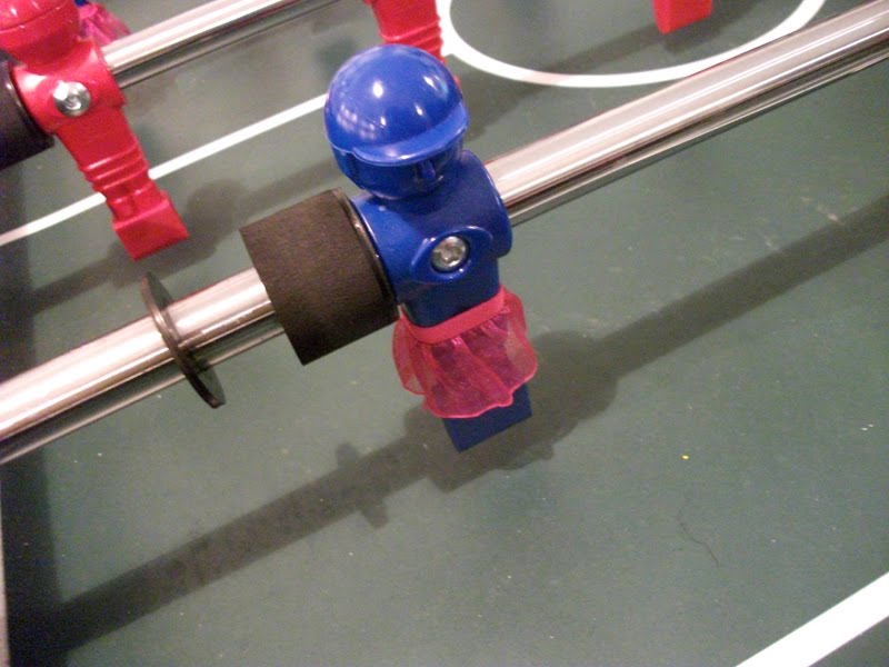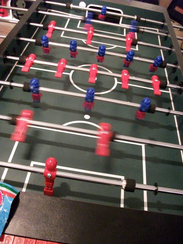 Wenn man Glück hat, ist in Berlin alles um die Ecke. Der Bäcker, der Gemüsehändler, die beste Dönerbude und das Abendprogramm. Wir mussten nur die Straße bis zur nächsten Ecke entlang laufen, einmal links abbiegen und schon waren wir am Ziel. Es war das einzige Geschäft in der ganzen Straße, das noch hell beleuchtet war und die Tür weit offen stand. Lange, weiße Holzbretter zierten die Wand auf der linken Seite. Gerade aus, sehe ich zwei alte Bekannte. Bitgäde und Expedit, die zwei Bestseller-Regale von IKEA. Daneben steht ein hoher Tresen mit allerlei Kleingram und davor vier Industrienähmaschinen. Da kommen Erinnerungen in mir hoch. An mein Modediplom, die Nähwerkstatt in der FH, die durchgemachten Nächte und der Lieferservice von Pizza Pax. Packattack ist keine Nähstube sondern ein Taschenladen. Aber nicht irgendeiner. Der Besitzer ist gelernter Segelbauer, wollte aber den Segeltuchstoff nicht mehr am Mast hin und her schwingen sehen sondern an den Schultern der Berliner. Im ganzen Laden sind Taschen, Taschen, Taschen aus dem robusten Segelstoff. Auf den Regalen, in den Fächern an zusätzlichen Kleiderstangen und ab und zu Mal eine Sonnenbrille. Groß und kleine, in Hochformat oder Querformat, für das Handy oder den Schulordner. Unverwüstbar und alltagsbeständig ist jede individuell gestaltet. Das Krankenschwester-Täschchen in weiß mit rotem Kreuz, die schwarzen Exemplare mit Fliegenpilz oder Maus mit Käse. In der Mitte des Ladens steht ein voll bepackter Tisch. Weitere Modelle häufen sich hier über- und nebeneinander an. Doch jeden Mittwochabend, ab 21 Uhr wird der Tisch leer geräumt und Leonhard Soccer kommt zum Vorschein. Der Laden füllt sich mit Menschen. Frauen mit Weinflaschen begrüßen sich, Männer stoßen mit Bier an und das erste Spiel wird eröffnet. M. hat mich zu ihrem wöchentlichen Kickerstammtisch mitgenommen, der nicht in einer rauchigen Eckkneipe statt findet, sondern in einem Designer-Taschengeschäft. Witzige Idee, nette Leute und Schade, dass ich nächste Woche nicht wieder dabei sein kann.