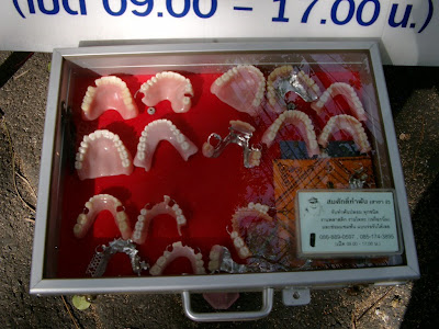 Nach einer kleinen Bootsfahrt haben wir dann auch wieder den Weg nach Hause gefunden, ohne Karte! Durch einen witzigen Straßenflohmarkt auf dem es echt strange Sachen gab. 100 verschiedene, getrocknete Fischsorten, Stücke vom Tigerfell aber das unglaublichste: Man konnte sich da Gebisse kaufe!!! Beweisfoto siehe oben. Zum Abendessen gabs heute Frühlingsrolle, Pizza und meinen täglichen, gekühlten Kakako, der mir meine Schokoladensucht befriedigt. Ja, jetzt sitz ich gerade im Bus Richtung Sumatari oder so und habe das scheiß Gefühl, dass ich die Nacht wieder durchmachen werde weil ich hier nicht pennen kann. Aber bald, sehr bald gibt es nur noch mich, die Hängematte und den Strand YEEEAAAHHHHH!!!!