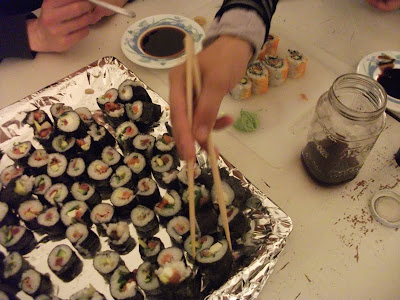 Du hast also Sushi gegessen. Aber ich dachte, du bist Vegetarierin? Oder hab' ich das falsch mitbekommen?
