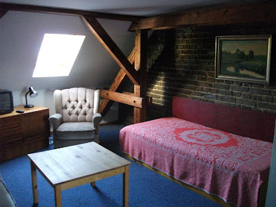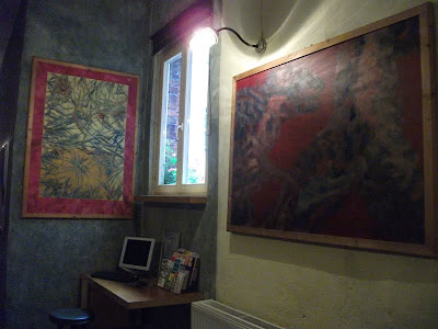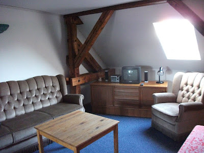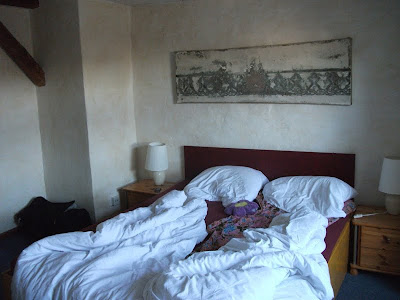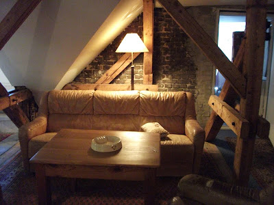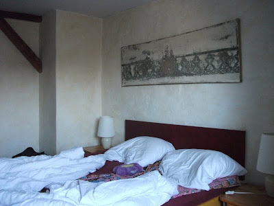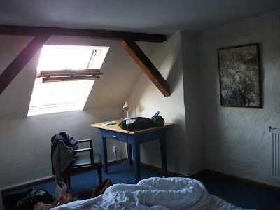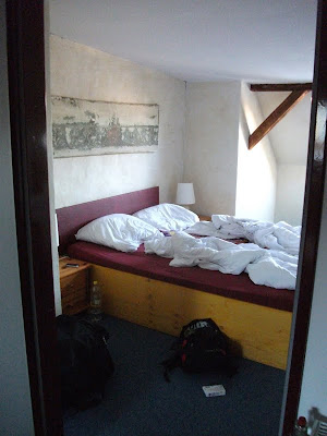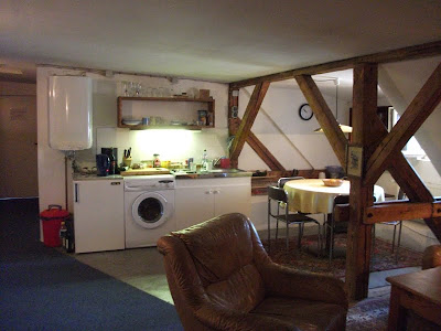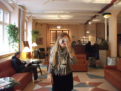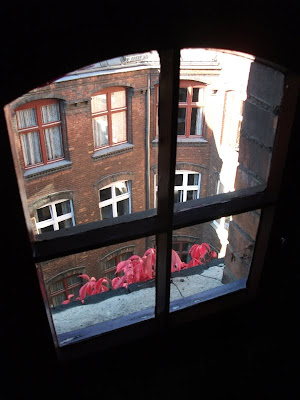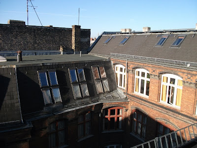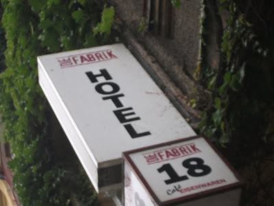 Ein schmaler, unscheinbarer Eingang in Kreuzberg, nähe Schleschises Tor führ zu meiner Übernachtung, in der Fabrik. Gutsherr Georg nimmt mich hier für ein Wochenende auf, damit ich mal wieder richtig ausschlafen, den ganzen Tag im Bett rum liegen, stundenlang Fernsehen schauen und Wäsche waschen kann. Ich habe mich so gefreut als er mir auf meine Anfrage geantwortet hat und meinte, ich soll doch mal vorbei schauen und ihm das näher erklären. Am nächsten Tag stand ich in der Eingangshalle, habe Georg mein Projekt und meinen schweren seelischen und körperlichen Zustand erklärt, für den ich unbedingt etwas Ruhe und Erholung brauche und habe sein Mitleid erregt. Nun nächtige ich die nächsten zwei Tage im Dachgeschoss der Fabrik. Das ehemalige Fabrikgebäude der Jahrhundertwende wurde 1995 restauriert und ausgebaut. Geblieben ist der für Berlin-Kreuzberg typische Charme eines Backsteingebäudes mit hellen, großzügigen und hohen Räumen und einem Garten im Hof, der jetzt leider schon geschlossen ist. Von Einzel-bis Achtbettzimmer ist alles da. Ich habe gleich eine ganze Wohnung, mit Doppelbett und seperatem Wohnzimmer, kann auf die Dächer von Berlin schauen und will nie mehr weg! Super leckere heiße Schokolade, aber auch Frühstück, Mittag- oder Abendessen gibt es nebenan im Fabrik-Café. Es ist so schön! Georg genießt gerade das Oktoberfest und ich bin zum ersten Mal lieber am Wochenende hier, in meinem schönen Hotelzimmer.