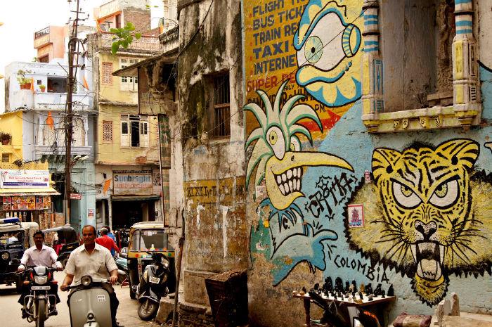 Ein weiteres großes Highlight beim Backpacken in Indien und bei meinem Zwischenstopp in Udaipur war die Streetart. Ich hätte es nie für möglich gehalten, dass eine indische Stadt ein wahres Streetart-Freilichtmuseum sein kann. Doch Udaipur ist es. Schaut man einmal genau um die Ecke, findet man immer wieder neue kleine Stencils, Grafitties oder einfache Statements in Hindi, die, dank der Schrift, wunderschön aussehen. Udaipur, damit hast du mich gepackt.