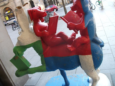 Diese Viecher, die immer anders angemalt werden, gibts anscheinend in mehreren Städten. In Worms ist es ein Drache in Mannheimn meines Wissens ein Pferd, ne Kuh hab ich auch schonmla gesichtet.. Das sind dann meist Firmen, die das in "ihrem" Design anmalen und dann eben ind er Stadt verteilen..