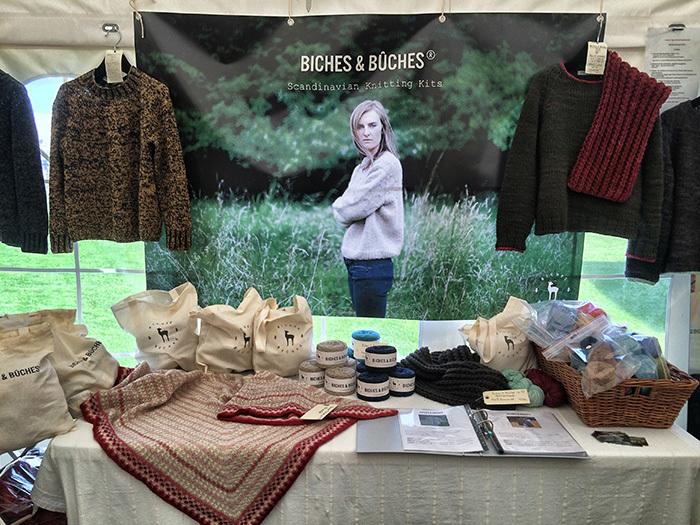 Am zweiten Tag habe ich eine Begegnung, die mir Hoffnung gibt in Bezug auf die anwesende Altersklasse. Ich treffe Caroline, die mit ihrer ganzen französisch-dänischen Familie den Online-Store Biches & Bûches für Strickdesign betreibt. Ihre Mutter ist für die Designs und die Woll-Auswahl verantwortlich, Caroline hat das ganze fotografiert und auch das Logo designt. Ihre Schwester ist das Model, und ihr Vater organisiert alles im Hintergrund. Caroline hatte bis vor kurzem mit Stricken nicht viel am Hut. Sie dachte, wie so viele andere, dass es eher eine Sache für ältere Damen wäre. Bis zu dem Zeitpunkt als sie die Designs ihrer Mutter gesehen hat. Sie sind skandinavisch schlicht, aber die Wolle von bester Qualität. Ganz ehrlich, um diese Pullover würde sich jeder etwas schickere Hipster prügeln. Da war es auch um Caroline geschehen und seitdem strickt sie wie ein Weltmeister.