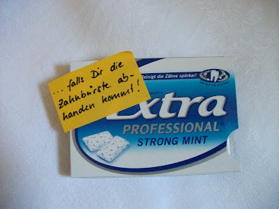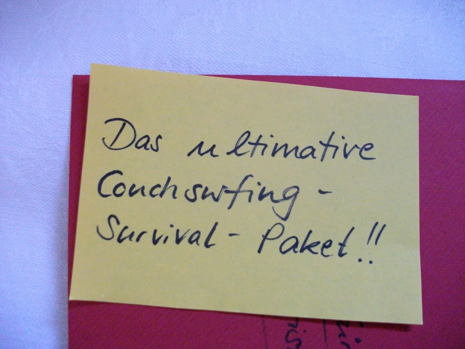 Das war glaub ich mein kreativstes Geburtstagsgeschenk, dass ich bekommen habe. Das ultimative Couchsurfing-Survival-Paket. Habe mich sehr gefreut :)