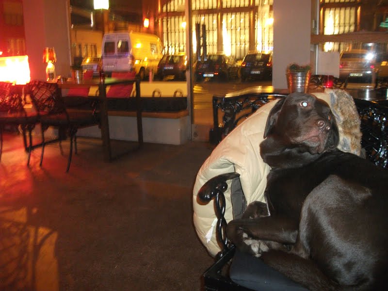 Aber nicht nur das wird mir erzählt, sondern auch die ganze Umbau- und Einrichtungsgeschichte der Kneipe und der Inneneinrichtung. Die vielen Bilder wurden eines Abends mit Freunden zusammen gestaltet, auf der Toilette vereinen sich 70er Jahre Fliesen mit modernen Kunstwerken, die Männer können beim Pinkeln ein silbernes Geweih betrachten und sich anschließend die Hände über den selbst gebauten Designer-Betonbecken waschen. Eigentlich ist so gut wie alles in der Kneipe liebevoll selbst gemacht, vom Tisch bis zur Tischlampe oder liebevoll zusammen gekauft. Das Farbschema ist ganz einfach zu entschlüsseln. Pink, Schwarz mit Holz. Ein bisschen verliebt, habe ich mich in den alten Sekretär, in dem das Besteck aufbewahrt wird und die Pudelskulpturen.