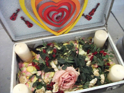 Licht und Wärme dargestellt durch die Kerzen, gute Gedanken dargestellt durch Rosen und Rosenblätter, Harmonie dargestellt durch die Geige und die unsterbliche Liebe dargestellt durch die Herzen.“
