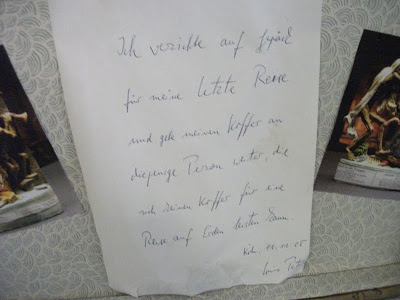 Von hier werde ich nichts Materielles mitnehmen können. Ich wünsche mir, dass ich in Kontakt bleiben kann mit den Menschen, die mir in meinem Leben begegnet sind. Deshalb habe ich in meinem Koffer dieses Dosentelefon gepackt.“