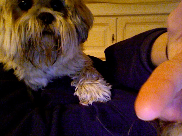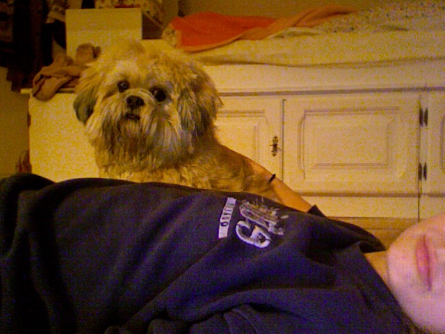 Ich hab einen Plüschhund der sieht genauso aus. Ihr zwei bildet schön ein niedliches Pärchen!