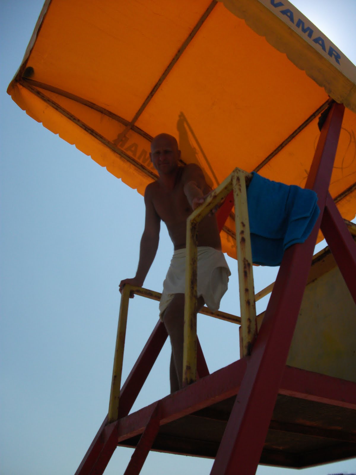 Er sitzt den ganzen Tag am Strand und beobachtet die Leute. Sorgt dafür das nichts passiert. Er ist Rettungsschwimmer. Er gibt selber zu, dass er mit seinen über 40 Jahren eigentlich zu alt für den Job ist, aber er liebt es. Er liebt das Meer. Sein Appartment ist natürlich auch am Meer, damit er es aus dem Fenster immer sehen kann. Wenn das Wetter schlecht ist und keine Badegäste am Strand sind kommt er trotzdem. Nur um zu schwimmen. Ich möchte wissen was er im Winter macht. „I suffer.“ Oft reist er aber auch nach Indien oder Dubai für zwei bis vier Wochen. Ich bin begeistert von seiner Leidenschaft. Seiner Liebe zum Meer. Er kommt mir so glücklich, zufrieden und ausgeglichen vor. Er hat etwas gefunden an den er sich immer erfreuen kann, dass ihn nie enttäuscht, verlässt oder verschwindet. Das Meer.