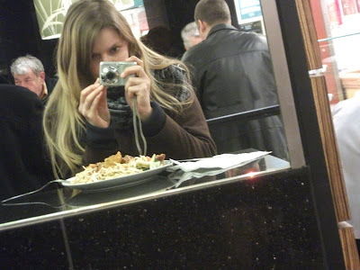Ich war die letzten Wochen wirklich unendlich viel unterwegs und nur insgesamt 6 Tage in Berlin, in meiner Wohnung. Die restliche Zeit habe ich mich für 9 flats in Deutschland rumgetrieben oder war für die „90 Nächte, 90 Betten“ Buchpromo unterwegs. Mein Leben spielte sich also größten Teils auf Bahnhöfen ab. Da wurde mir erst einmal klar, was man dort für ein kulinarisches Angebot bekommt. Wenn man noch stundenlang auf den Zug warten muss und man nichts zu tun hat, macht man eben Fressbudenshopping. Was einem immer und überall ins Auge fällt, sind die üblichen Verdächtigen: McDonalds, Subway, Burger King, Ditsch, Starbucks, Nordsee… Der Hamburger Hauptbahnhof hat zusätzlich noch ein paar exotische Schmanckerl: Die Pilsbar, Löwenbräu, das indische Restaurant Manjo und mein Zielobjekt ASIAHUNG. Ich wollte versuchen irgendetwas zu mir zu nehmen, das weniger als 1000 Kalorien hat. Gar nicht so einfach. Also ist meine Wahl auf die asiatische „leichte“ Küche gefallen. Ich war ein bisschen irritiert, als ich mein Essen wie in einer Kantine über den Tresen ausgehändigt bekommen habe und mir einen Platz suchte. Nur Männer essen hier. Nur Männer über 40 essen hier. Warum?