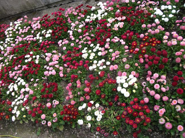 …angepflanzte Blumenbeete überall.