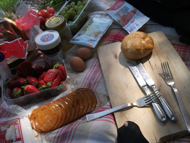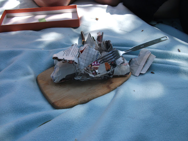 …Schokoladenessen auf der Picknickdecke.