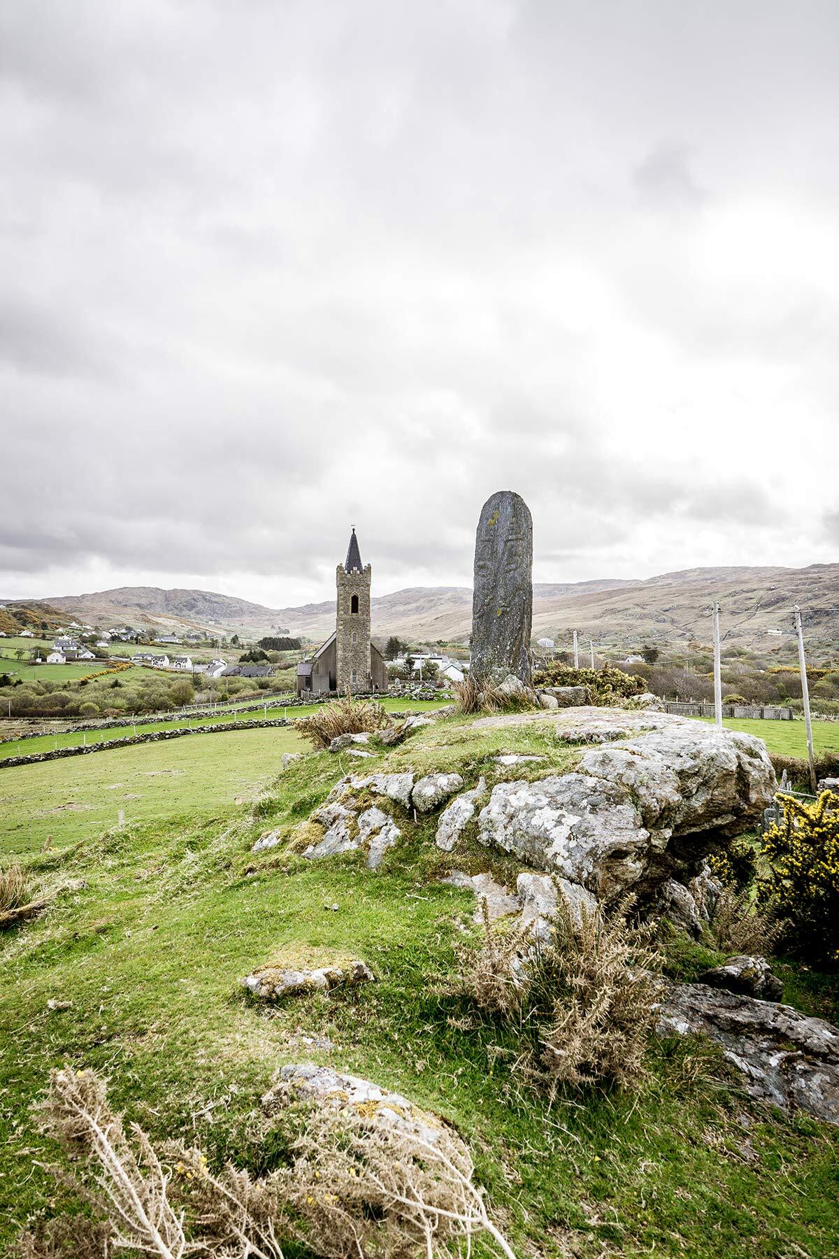Victor bringt uns an den Endpunkt unserer Etappe vom Vortag, der heute unser Startpunkt ist. Die Tour folgt weiter dem Bluestack Way und zu Beginn erlauben wir uns, einen kleinen Abstecher zu einem frühchristlichen Friedhof – dem Disert Graveyard.