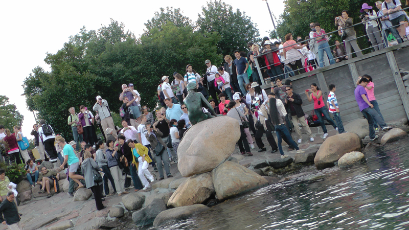 Die kleine Meerjungfrau belagert von japanischen Touristengruppen. Seht ihr die rechts, mit dem blauen Mundschutz?