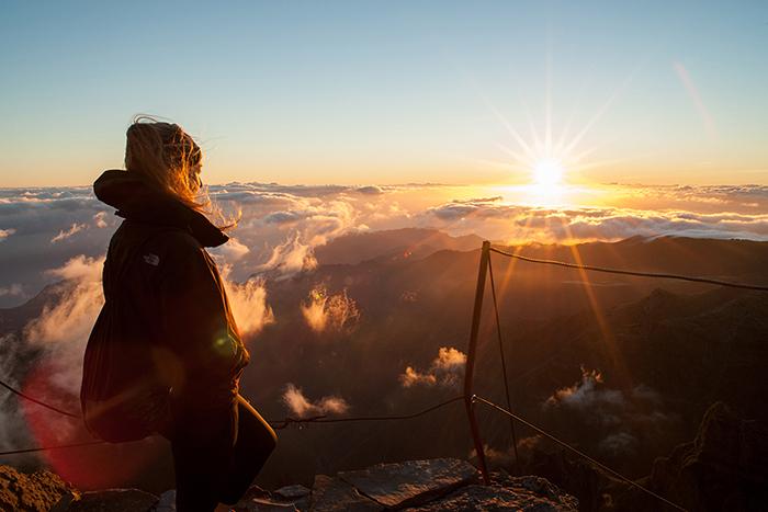 Einer meiner liebsten Madeira Reisetipps: Den Sonnenaufgang auf dem Pico do Areeiro, Madeiras dritthöchstem Berg, erleben. Noch in der Kühle des frühen Morgens und im Dunkeln haben wir uns mit Jeeps auf den Weg gemacht, Nebelfelder durchquert und dann die Wolkendecke durchbrochen um uns unter einem klaren Sternenmeer wieder zu finden. Dort oben weht ein kräftiger Wind, der mich einmal fast über die Klippen geschubst hätte. Also warm einpacken und gut aufpassen wo man im Dämmerlicht hintritt! Doch ist die Kälte unfassbar egal, wenn man erst die zarten Pastelltöne am Wolkenhorizont sieht und sich dann in wenigen Minuten die gleißende Sonne auf den Weg macht und alles in rot-goldenes Licht taucht. In diesen Momenten frage ich mich immer, wie der Mensch ernsthaft denken kann er sei die „Krone der Schöpfung“. So stand ich noch ein paar Minuten auf der Bergspitze und habe den Wolken beim Tanzen zugesehen und dabei einen dieser Zen-Momente gehabt, in denen man tatsächlich einmal an nichts denkt und zufrieden ist.