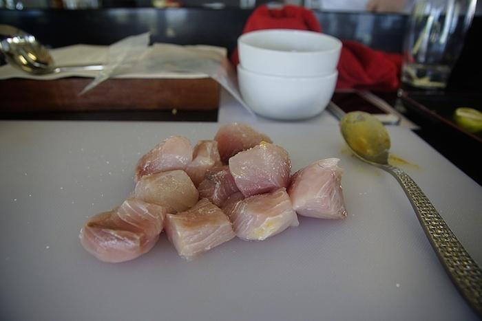 - Mariniert das Thunfischfilet mit 3 cl Sojasauce