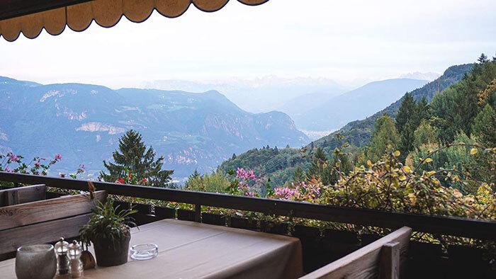 Auch neben den klassischen Törggele Abenden im Meraner Herbst, ist eine Einkehr in eines der vielen ausgezeichneten Restaurants in Meran absolut lohnenswert. Die regionalen Gerichte und hausgemachten Südtiroler Spezialitäten lassen sich besonders gut zu einem Glas Weiß- oder Rotwein aus der Region kombinieren. Das Restaurant Apollonia oberhalb von Nals bietet euch in diesem Zuge nicht nur herbstliche Kastaniengerichte, sondern auch noch einen wunderschönes Bergpanorama mit Blick auf die Dolomiten und über das Tal.