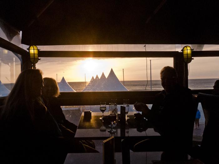 Ein paar Tage später wird hier der World Windsurfcup statt finden, die Aufbauarbeiten haben schon begonnen. Wir sind froh, jetzt hier zu sein. Viel entspannter so ohne Getümmel und Touristen. Einen Absacker gibt’s an der Hotelbar des Lindner, wo uns der Barkeeper Drinks nach unserem eigenen Geschmack mixt (sehr zu empfehlen: „der Hanna“). Später stellt sich heraus, dass er nicht nur seinen Job gut beherrscht, sondern auch Kartentricks in petto hat, die auf jeden Fall zu unserer Unterhaltung beitragen. Zwei Drinks und einige Kartentricks später fallen wir glücklich, leicht beschwipst und ohne Termine ins Bett.