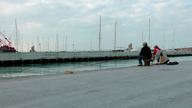 Es riecht nach Fisch. Auf dem Kopfsteinpflaster liegt noch ein getrockneter Seestern, der vom letzten Tag übrig geblieben ist. Schwere Netze hängen an Mästen oder liegen auf dem Holzboden des Kahns. Ich mache einen Spaziergang am Fischerhafen von Rimini. Ein Boot nach dem anderen steht hier in Reih und Glied. Alles Fischerboote, keine Yachten, keine Segelschiffe nur Fischerboote. Sie liegen dort an und schwappen sanft mit dem Wasser hin und her. Es ist ein Sonntag im Oktober. Der Wind ist kühl und salzig und es liegt die Sonntagsruhe über der Stadt. Entlang der Hafenpromenade sieht man immer wieder kleine Klappstühle, auf denen Angler sitzen und ihre Geduld unter Beweis stellen. Angeln, das wäre nichts für mich. Mich machen schon die drei Stunden verrückt, die man ruhig dasitzen muss, um einen Film anzuschauen.