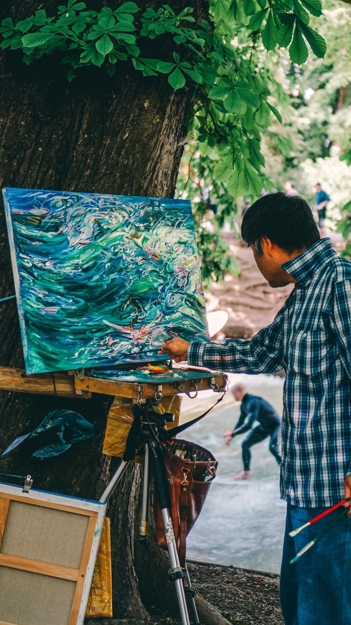 An diesem Tag hatte ich eine ganz besondere Begegnung mit einem koreanischen Künstler, der die Bewegungen der Surfer auf sein Gemälde übertragen hat. Super spannend.