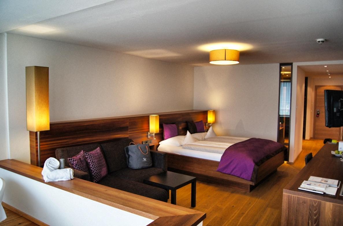 Tasche für den Wellnessbereich mit Latschen und Bademantel im Zimmer ist schon mega wichtig, noch geiler ist es wenn es einen Extra Aufzug in den Wellnessbereich gibt, so dass man im sexy Bademanteloutfit keinen normal angezogenen Hotelgästen über den Weg läuft (gesehen in einem weiteren wunderbaren Wellnesshotel am Aachensee!). Weiterhin sehr glücklichmachend sind Himmelbetten im Wellnessbereich!