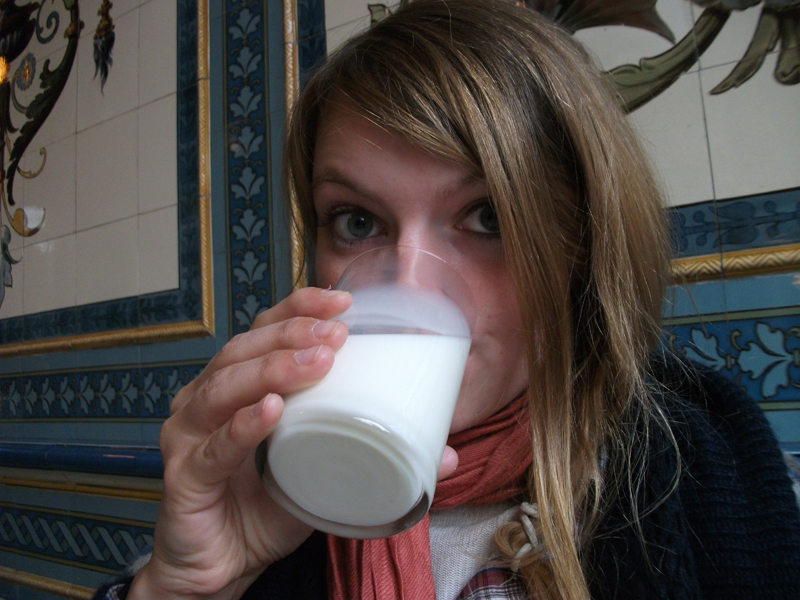 Für Vegetarier ein Glas frische Landmilch aus der Molkerei Pfund.